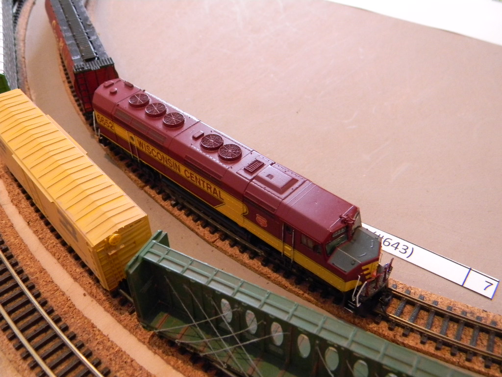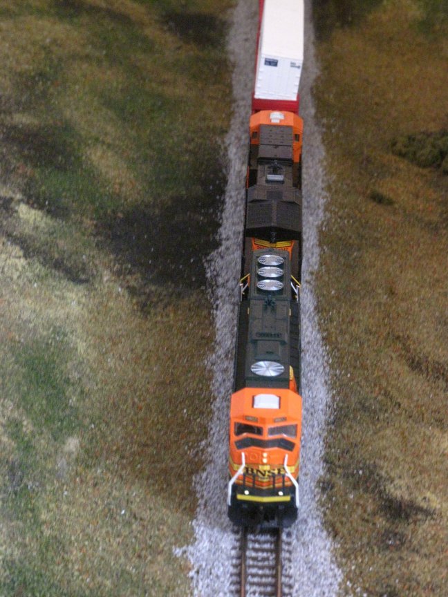 2 of 19: The DPU at the read of Chris' 21' long Intermodal train. Photograph courtesy of Irene Goldsmith.