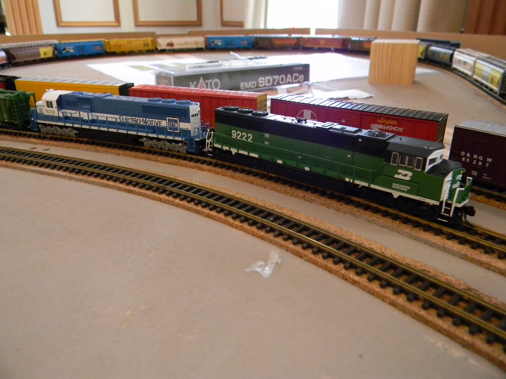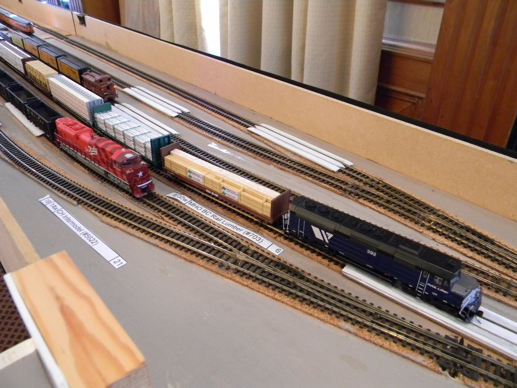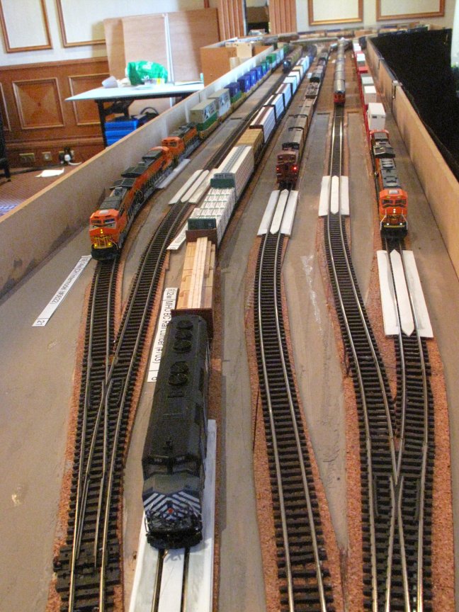 3 of 19: One of the storage yards. the locomotives on the right are the DPUs at the end of the Intermodal train on the left! Photograph courtesy of Irene Goldsmith.